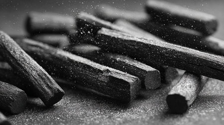AI Generated. Black charcoal pieces arranged closely together create a textured surface