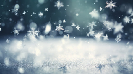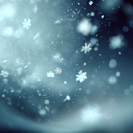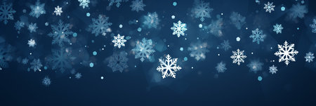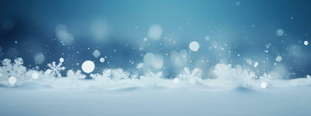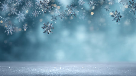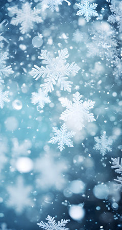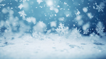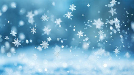 A serene winter scene with snowflakes on a blue background, ideal for holiday promotions