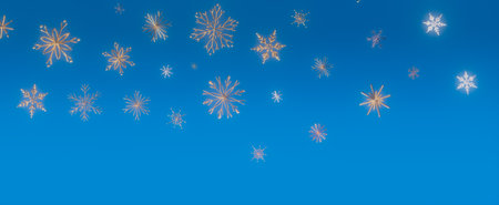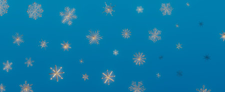 Snowflakes falling on blue background. 3d render illustration.
