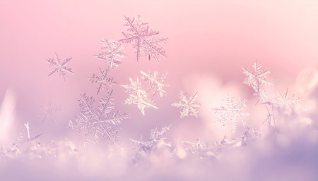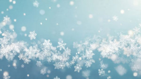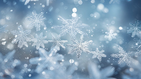 A stunning winter scene featuring delicate snowflakes and a soft blue background. Perfect for festive backgrounds or winter-themed projects.