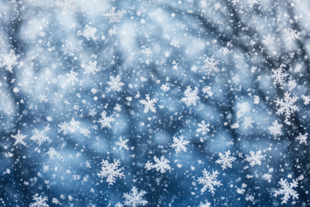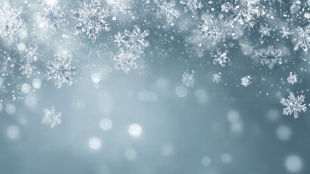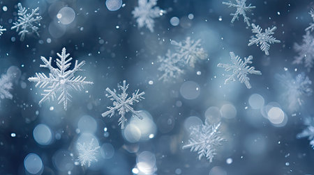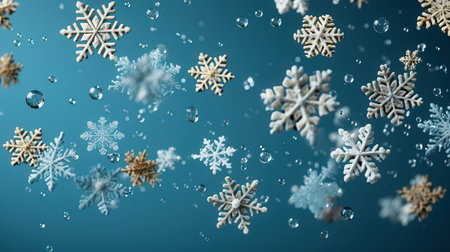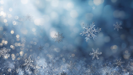 Snowflakes against a serene winter blue background