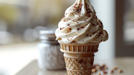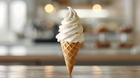 A captivating soft serve ice cream in a cozy setting perfect for sweet moments.