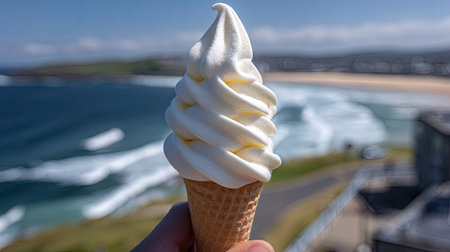 Ice Cream Cone on a Sunny Seaside Promenade