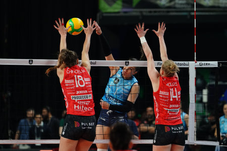 ISTANBUL, TURKIYE - MAY 03, 2025: Cristina Chirichella and Joanna Wolosz in Vero Volley Milano vs Imoco Volley Conegliano CEV Champions League Volley Final Four Semi Final match in Ulker Sports Arena