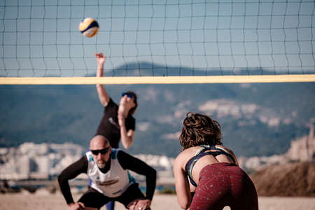 playing volleyball, Ciudad Jardin beach, Palma, Mallorca, Balearic Islands, Spain