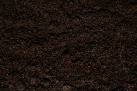 Rich Dark Soil Texture Background with Copy Space - Organic Farming