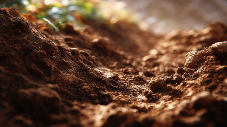 Close-up view of rich brown soil with detailed texture. This image captures the essence of earth