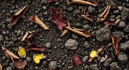 A captivating close-up of rich, dark soil mixed with pebbles, perfect for showcasing the beauty of nature's earth. Ideal for gardening and landscaping themes.