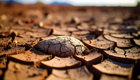 This powerful image portrays parched, cracked earth, vividly showcasing the dire and severe consequences of prolonged drought and climate change on our delicate environment and its ecosystems