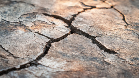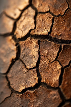 Detailed shot of cracked soil with intricate natural patterns, highlighting the effects of extreme dryness