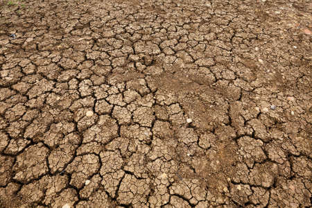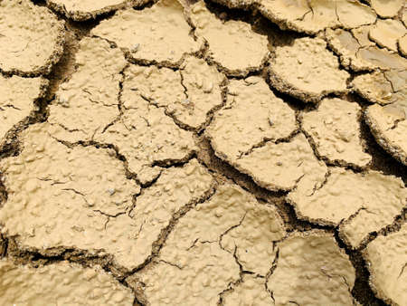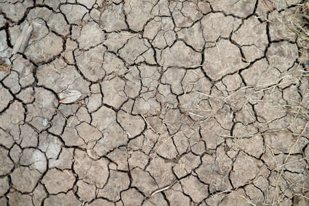The surface of dry land with many cracks. Ground surface peel off from hot temperature.