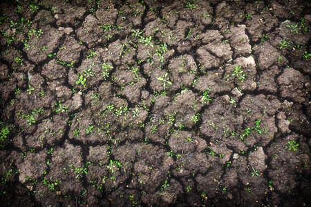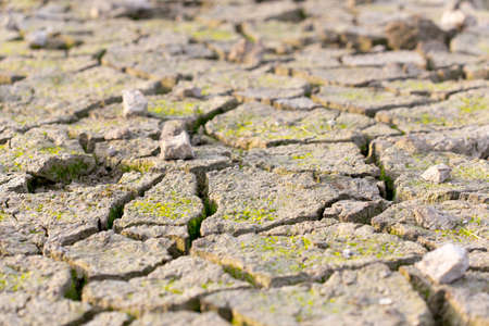 Stock Photo - The surface of the land was dry, cracked and green grass.
