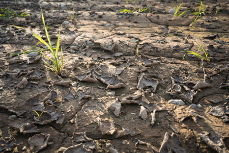 global warming issues lack of rain causing dry cracked earth difficult for plants struggling to grow