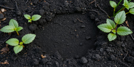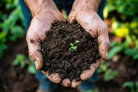 Hands holding dark soil, symbolizing connection to nature and earth. rich texture of soil conveys sense of nurturing and growth, evoking feelings of sustainability and environmental awareness