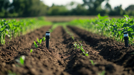 The meter has various indications illustrating its role in monitoring and measuring the moisture levels in the soil, a critical factor for successful crop cultivation