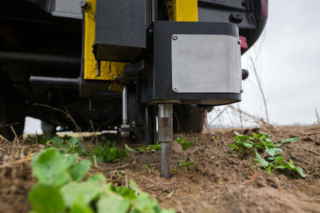 Soil Sampling. Automated probe for soil samples taking sample with soil probe sampler. Environmental protection, organic soil certification, research.