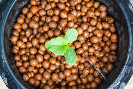 Plant in Pot With Medium at Hydroponics Farm