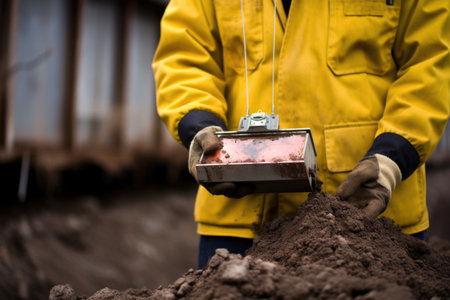 scientist holding a geiger counter close to a soil sample