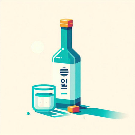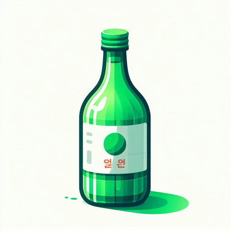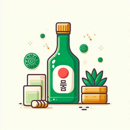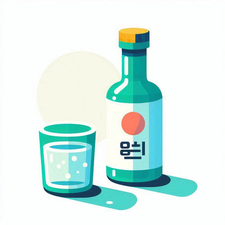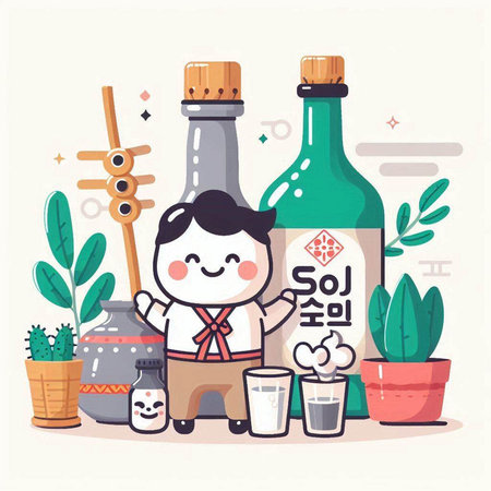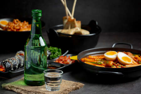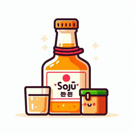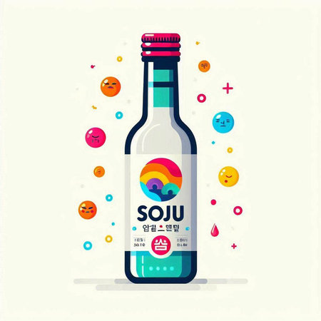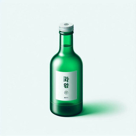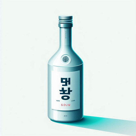 Blurred image of Soju or Korean burned liquor bottles for background.