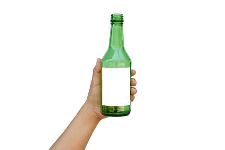 Bangkok, Thailand - 5 April 2019: Jinro Chamisul Soju isolated on white. It is a famous clear, colorless distilled beverage of Korean origin. Jinro is the largest manufacturer in South Korea