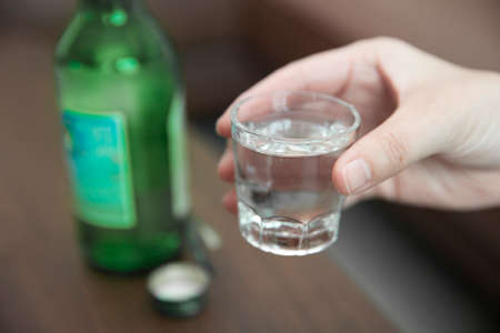 Alcoholic Clear Distilled Korean Soju in a Shot Glass