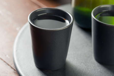 Alcoholic Japanese Sake Rice Wine in a Ceramic Glass
