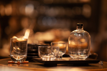 Close up of different glasses and bottles. drinking culture concept photo 076
