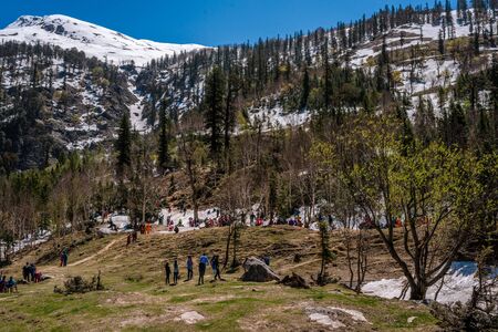 Manali, Himachal Pradesh, India - May 01, 2019 : Tourist enjoying in gulaba. Road to Rohtang pass in himalayas, india