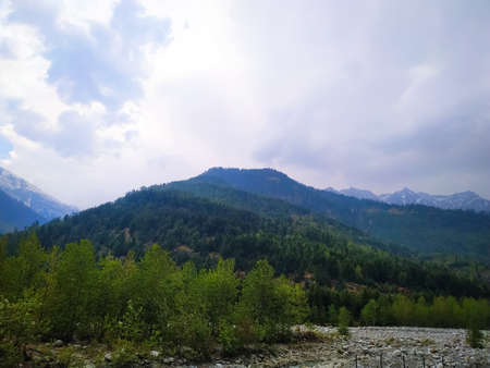 Mesmerizing view Pir Panjal Himalayan mountain range from Manali, Himcahal Pradesh, India.