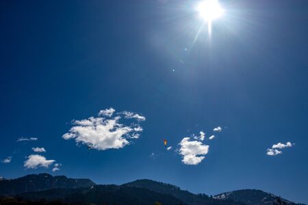 Paragliding in snow cap mountains of himalayas image is taken at manali india showing its amazing natural view.