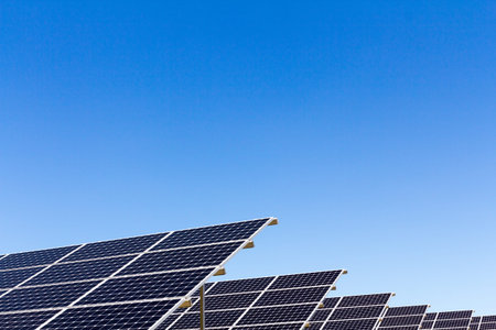 Solar power station or panels, photovoltaics, alternative source of electricity. Concept of sustainable and renewable sources.