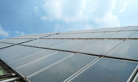 Solar Heat for hot water supply in Building with sunlight and blue sky - Energy savings concept