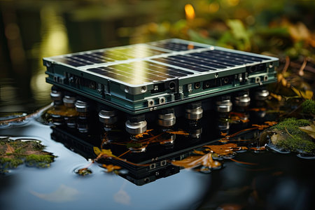 Solar panel generates electricity for modern alternative energy industry generated by artificial intelligence