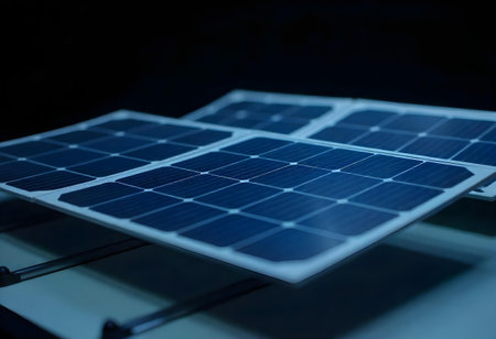 A close-up of solar panel surfaces reflecting sunlight efficiently.