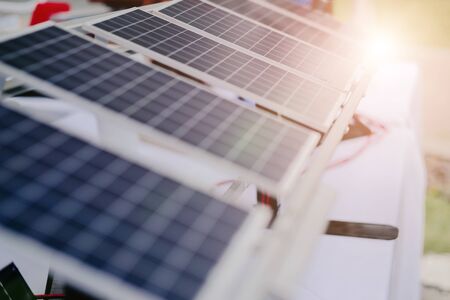Close up small size solar cells panels. Installation photovoltaic for provide clean power.