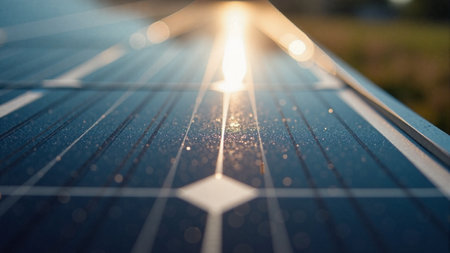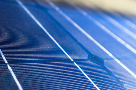 Close-up of solar panel texture showing manufacturing details and quality under optimal lighting conditions