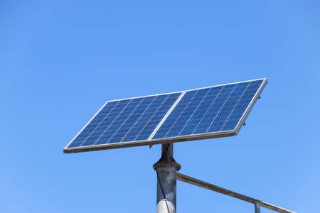 Photovoltaic solar power panel on sky background, green clean Alternative power energy concept
