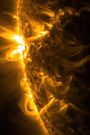 Fiery solar activity captured in high detail showcases the sun's dynamic surface