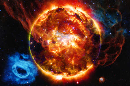 Fiery sun in space. Solar system. Abstract 3d illustration