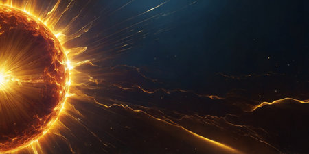 AI Generated. Abstract background with sun outburst with rays of light and solar wind spreading