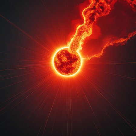 Exploding sphere of fireball illuminates dark space in futuristic illustration generated by artificial intelligence