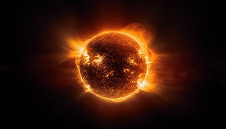 Abstract fiery sphere illuminates futuristic galaxy in natural phenomenon explosion generated by artificial intelligence