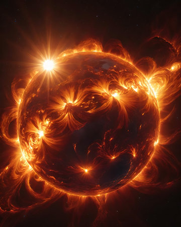Fiery Starburst Dramatic Cosmic Portrait, Revealing the Untamed Force of a Distant Sun