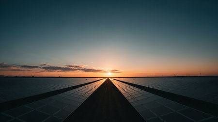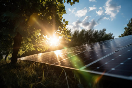 large solar panel absorbs the last rays of the setting sun, symbolizing the harnessing of green energy for a sustainable future.