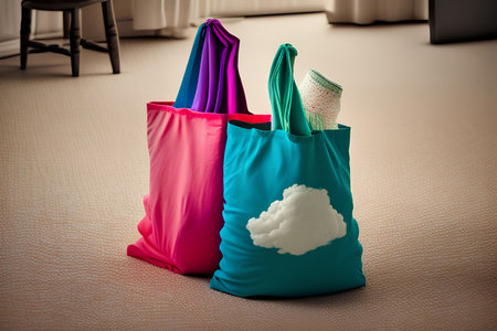 Vibrant shopping bags stand against a colorful backdrop, symbolizing retail therapy, consumerism, and the excitement of purchasing