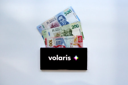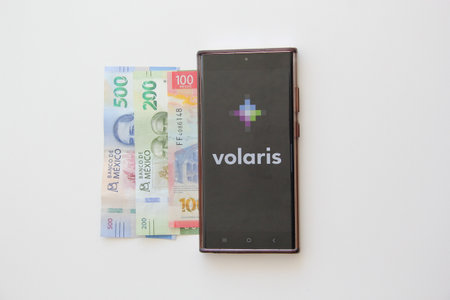 Mexico City, Mexico - Feb 22 2025: App and Web of Volaris, a Mexican low-cost airline that operates flights in Mexico, the United States, Central America and South America