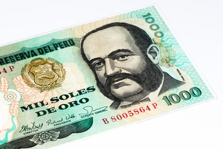 1000 soles de oro bank note. Soles de oro is the national currency of Peru