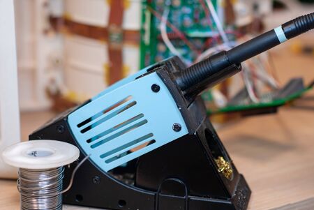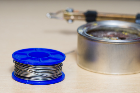 Soldering iron and tin coil, useful electronic laboratory instrument