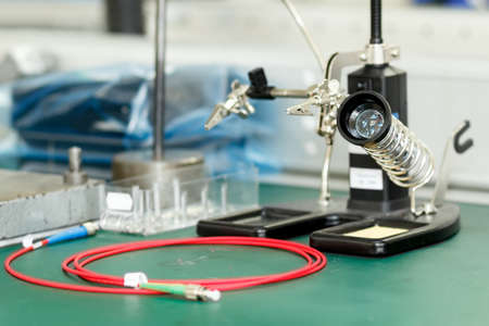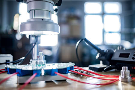 photo of electronics equipment assembly workplace with necessary tools