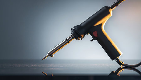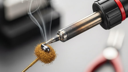 Close-up of a soldering iron being soldering in a workshop